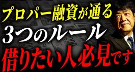 今回の動画は、プロパー融資を絶対に借りられる3つの条件(トリプルスリー)についてお話ししま...
